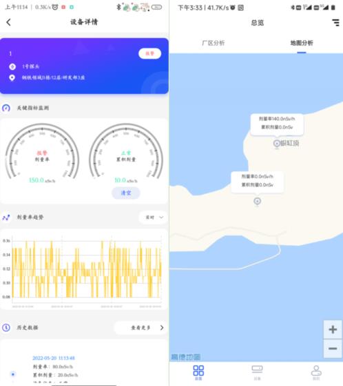 5、设备安装位置自定义,可通过布局图、地图实时显示剂量率